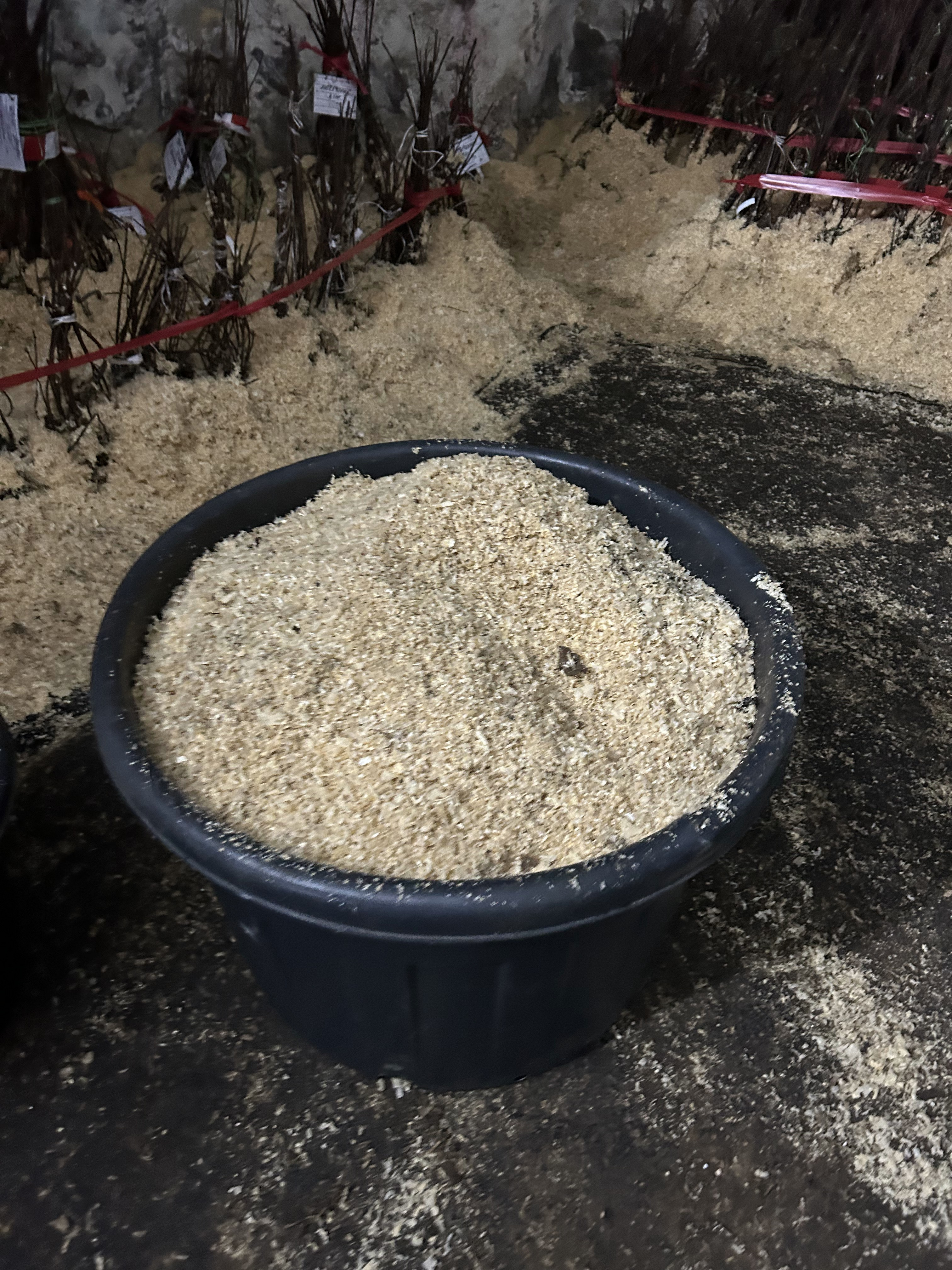 - корневая система гортензий прикопана влажным опилом